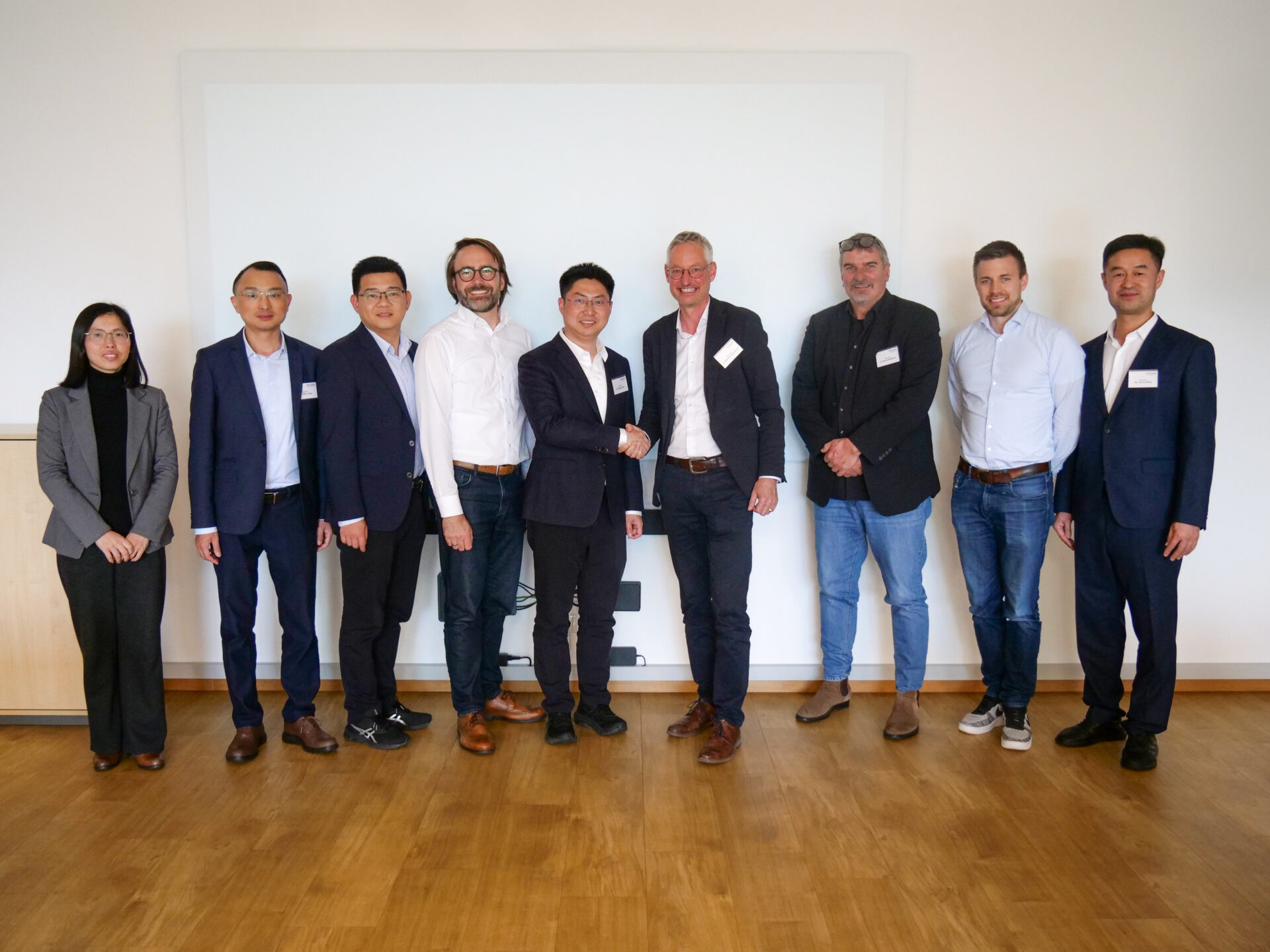 Markus, Mayor of Straubing (left), Wang Chao, Party Secretary of Zhangpu Town (center) and Christian, CEO of Sonplas (right)