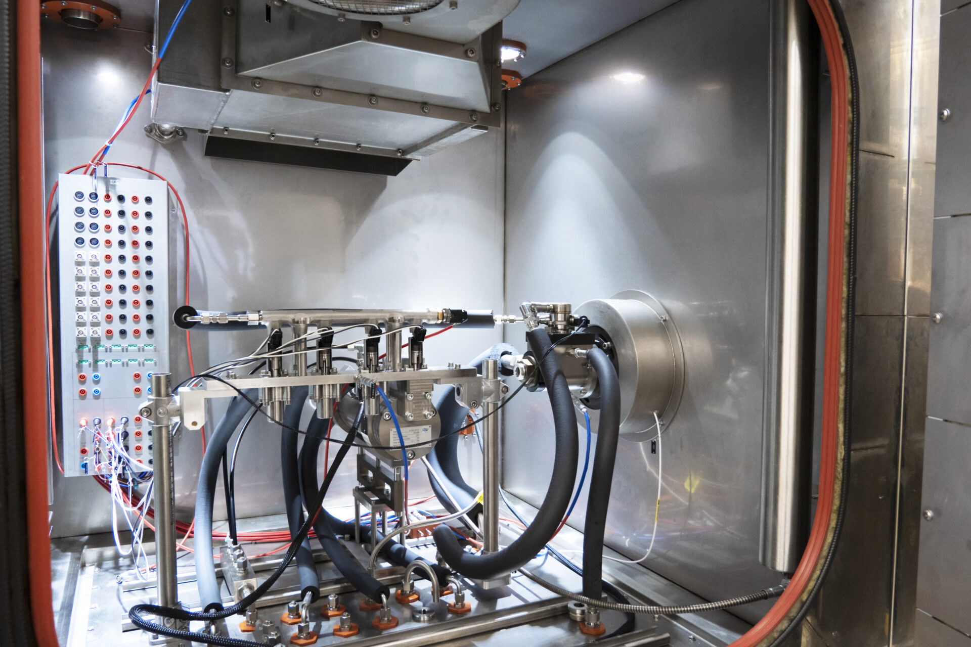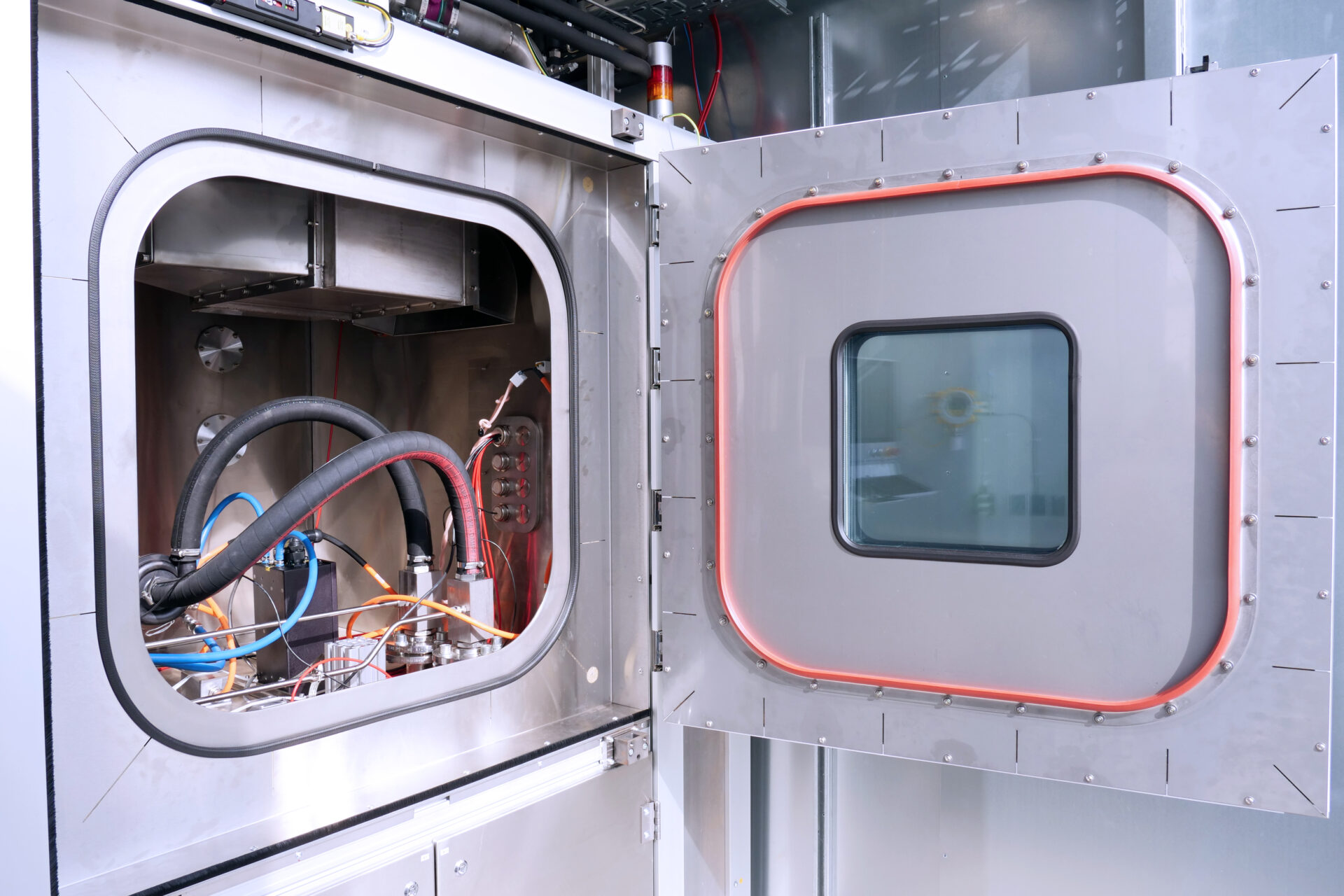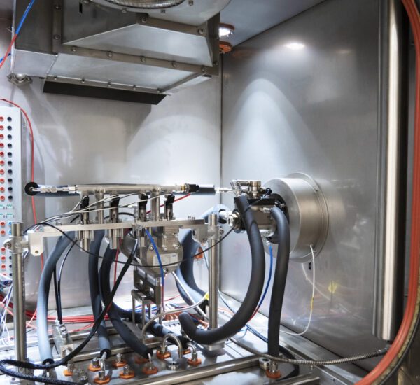 Function and endurance tests for product development often need to be carried out under truly realistic conditions. Our Ex thermal chamber enables not only highly dynamic temperature simulations but also the operation of non-explosion-protected test specimens with hazardous substances such as gasoline, liquefied petroleum gas (LPG), natural gas, ammonia, methanol, or hydrogen. This is made possible by inerting the test environment using an ignition protection gas such as nitrogen. In contrast to conventional gas detection systems, maximum safety with extremely fast response times is achieved through the principle of pressurized enclosure according to IEC 60079-2. Thanks to external temperature control and the use of explosion-protected protection systems and devices certified according to IECEx and ATEX (Equipment Group II, Temperature Class T3, Explosion Group IIC), the thermal chamber is free of potential ignition sources and compliant with the ATEX Directive 2014/34/EU.